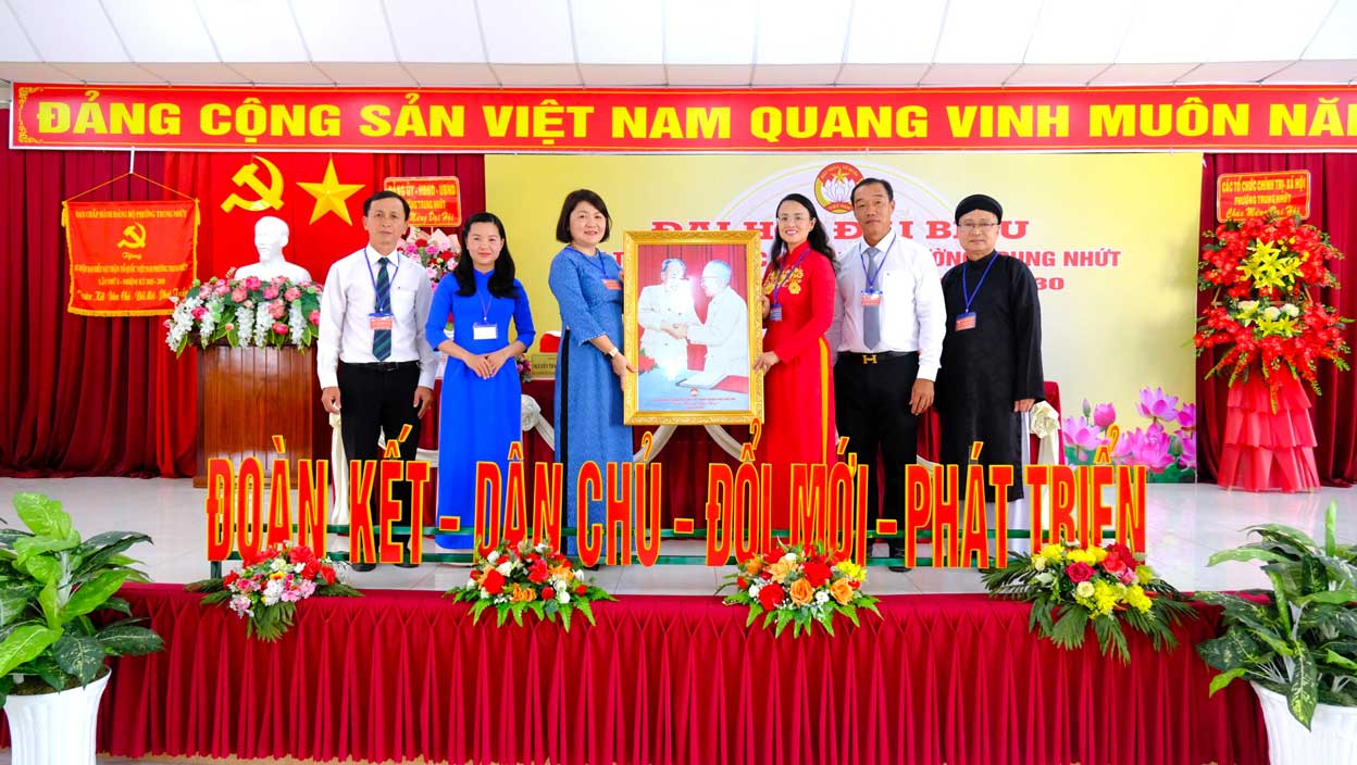 Ban Chấp hành Đảng bộ phường Trung Nhứt tặng bức trướng cho Đại hội. Ảnh: Mỹ Ly