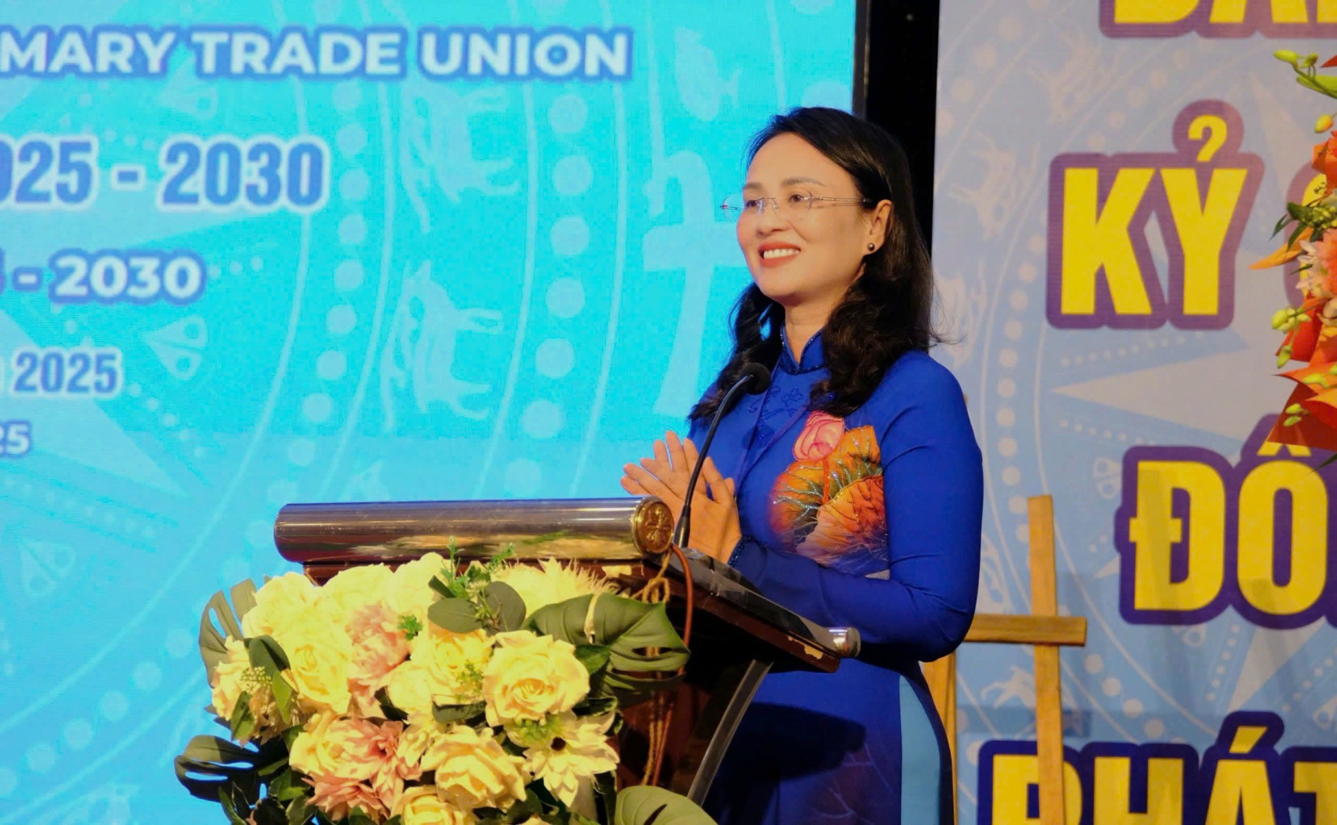 Bà Lê Thị Sương Mai - Ủy viên Ban Chấp hành Tổng LĐLĐ Việt Nam, Thành ủy viên, Phó Chủ tịch Ủy ban MTTQ Việt Nam thành phố, Chủ tịch LĐLĐ TP Cần Thơ – phát biểu tại Đại hội. Ảnh: Mỹ Ly