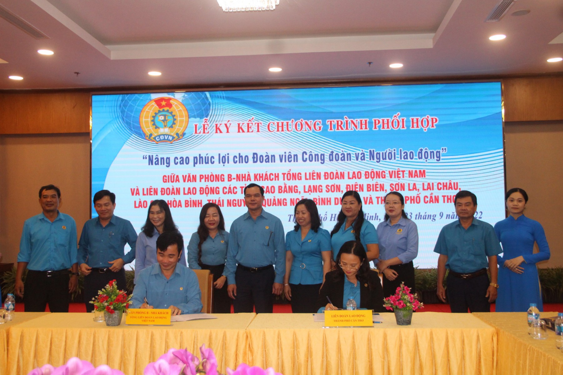 Chiều 23.9, Văn phòng B - Nhà khách Tổng LĐLĐ Việt Nam đã tổ chức hội nghị ký kết Chương trình “Nâng cao phúc lợi cho đoàn viên công đoàn và người lao động” với LĐLĐ các tỉnh Cao Bằng, Lạng Sơn, Điện Biên, Sơn La, Lai Châu, Lào Cai, Hòa Bình, Thái Nguyên, Quảng Ngãi, Bình Dương và TP. Cần Thơ.