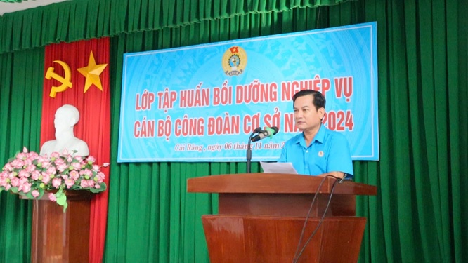 Kế hoạch số: 05/KH – LĐLĐ ngày 08 tháng 12 năm 2023 thực hiện chương trình số: 845/CTr-LĐLĐ, ngày 21 tháng 11 năm 2023 của Liên đoàn Lao động thành phố về “Tập trung thực hiện các nhiệm vụ đại diện cho người lao động, bảo vệ quyền, lợi ích hợp pháp, chính đáng của người lao động, trọng tâm là thương lượng, đối thoại và tiền lương giai đoạn 2023 - 2028”. Sáng ngày 06/11/2024 tại Trung tâm Chính trị quận Cái Răng, Liên đoàn Lao động quận tổ chức Hội nghị tập huấn Bồi dưỡng nghiệp vụ cán bộ Công đoàn cơ sở năm 2024.