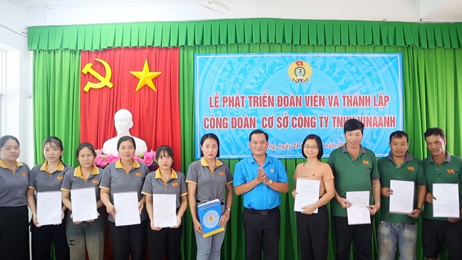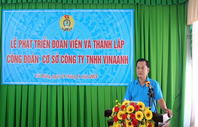 Chiều ngày 21/11/2024 Liên đoàn Lao động ( LĐLĐ) quận Cái Răng tổ chức Lễ trao quyết định phát triển đoàn viên và thành lập Công đoàn cơ sở (CĐCS) Công ty TNHH VINAANH, tại địa chỉ: Thửa đất số 1353, tờ bản đồ số 7A, Khu vực Thạnh Huề, phường Thường Thạnh, quận Cái Răng, thành phố Cần Thơ.
