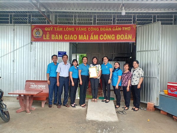 Nhằm giúp cho đoàn viên có hoàn cảnh khó khăn ổn định cuộc sống. Ngày 30/6/2020 Liên đoàn Lao động quận Ô Môn bàn giao “Mái ấm công đoàn” cho chị Nguyễn Thị Cẩm Hường – Đoàn viên Công đoàn Trường mầm non Anh Đào có hoàn cảnh đặc biệt khó khăn về nhà ở. Kinh phí xây dựng được trích từ nguồn Quỹ Tấm lòng vàng Công đoàn Cần Thơ với số tiền được hỗ trợ là 40.000.000đ.