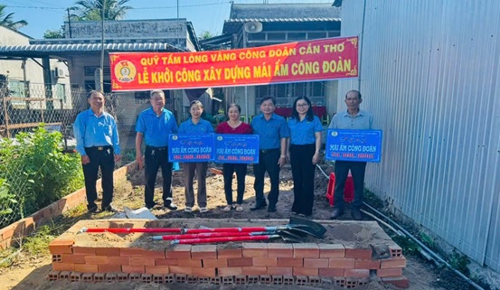 Mái ấm Công đoàn giúp cho các gia đình công đoàn viên được LÐLÐ thành phố hỗ trợ 50 triệu đồng/ mái ấm từ Quỹ Xã hội từ thiện Tấm lòng vàng tại Cần Thơ. Dự kiến, công trình sẽ hoàn thành và đưa vào sử dụng cuối tháng 5/2025. Tại buổi lễ khởi công cô Út Hết, đại diện cho các công đoàn viên được nhận mái ấm công đoàn chia sẻ niềm vui khi được hỗ trợ xây dựng nhà, mà bản thân thường mong ước nay đã được Công đoàn hỗ trợ thực hiện.