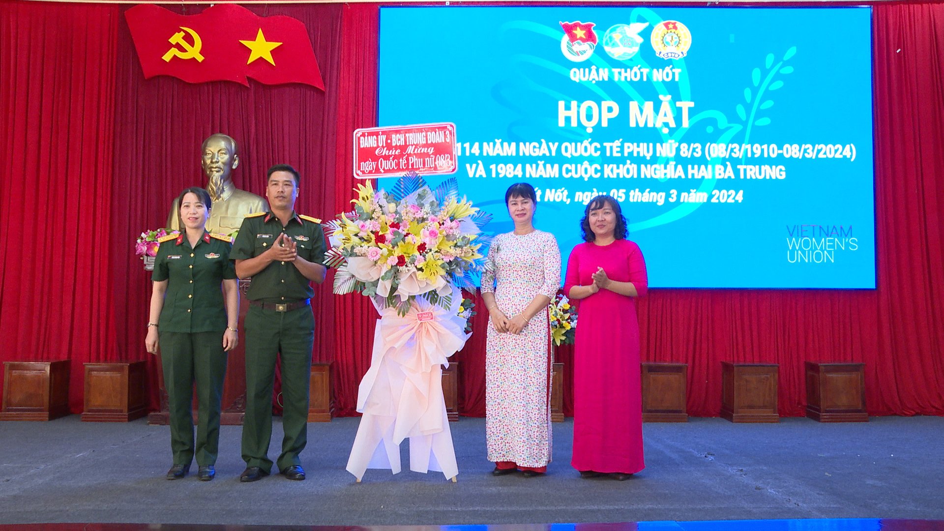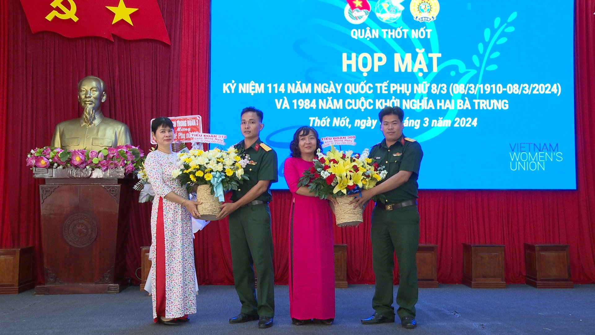 Sáng ngày 05/3/2024, tại hội trường Quận ủy Thốt Nốt, Liên đoàn lao động quận Thốt Nốt vừa phối hợp với Hội Liên hiệp phụ nữ (LHPN) quận và Quận Đoàn tổ chức họp mặt kỷ niệm 114 năm Ngày Quốc tế Phụ nữ 8/3 (8/3/1910 – 8/3/2024) và 1984 năm cuộc khởi nghĩa Hai Bà Trưng.