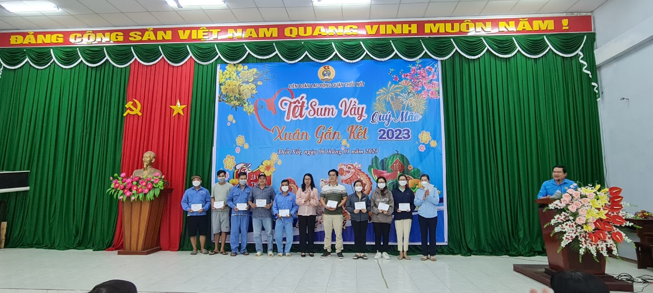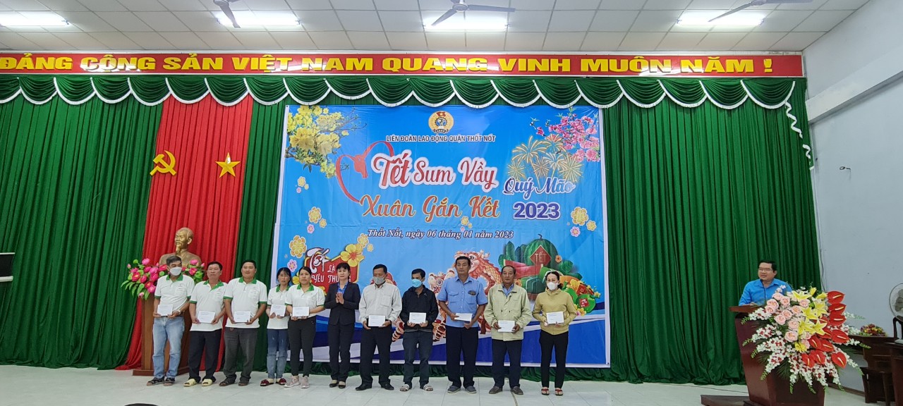 Sáng ngày 06/01/2023, Liên đoàn Lao động quận Thốt Nốt tổ chức chương trình "Tết sum vầy - Xuân gắn kết" trao quà cho đoàn viên, người lao động có hoàn cảnh khó khăn nhân dịp Xuân Quý Mão 2023.