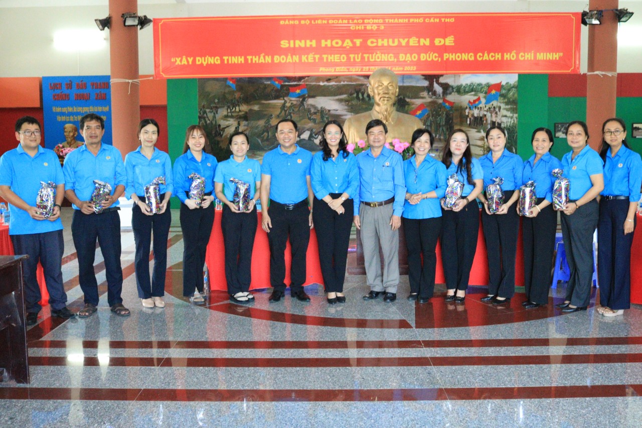 Ngày 25.11, Chi bộ 3 thuộc Đảng bộ Liên đoàn Lao động (LĐLĐ) TP Cần Thơ tổ chức sinh hoạt chuyên đề quý IV năm 2023 với chủ đề “Xây dựng tinh thần đoàn kết theo tư tưởng, đạo đức, phong cách Hồ Chí Minh” tại Khu di tích lịch sử chiến thắng Ông Hào (huyện Phong Điền, TP Cần Thơ).