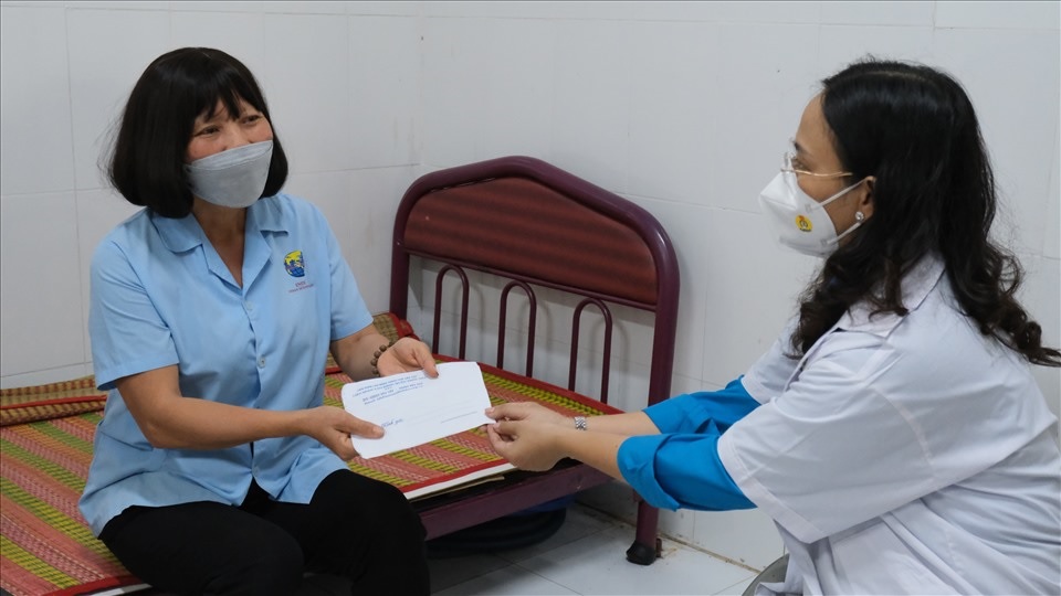 Chị Hà xúc động khi nhận được hỗ trợ từ Liên đoàn lao động thành phố.