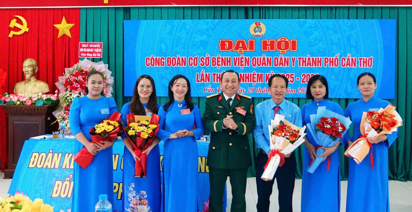 BCH CĐCS Bệnh viện Quân dân y TP Cần Thơ gồm 5 đồng chí (cầm hoa). Ảnh: LĐLĐ TP Cần Thơ