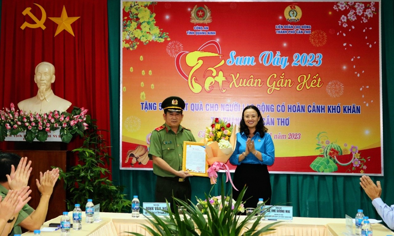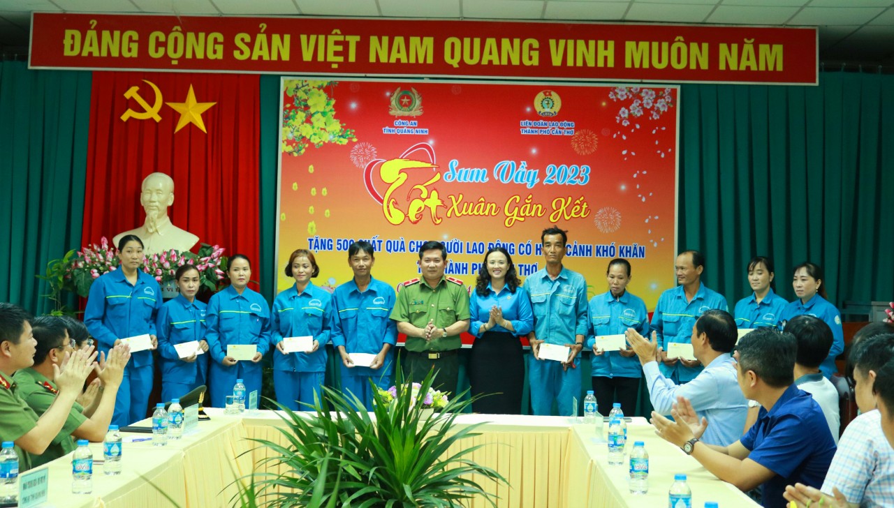 Dịp này, Công an tỉnh Quảng Ninh đã trao tặng bảng tượng trưng tặng 500 phần quà cho người lao động có hoàn cảnh khó khăn tại thành phố Cần Thơ với tổng trị giá 250 triệu đồng cho LĐLĐ TP. Cần Thơ. Trong đó, tại chương trình, trao trực tiếp 100 phần quà đến công nhân người lao động Công ty Cổ phần Đô thị Cần Thơ.