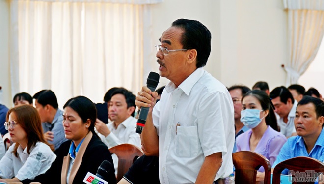 Cử tri đại diện doanh nghiệp thành phố kiến nghị những vấn đề mình quan tâm. Ảnh: ANH DŨNG