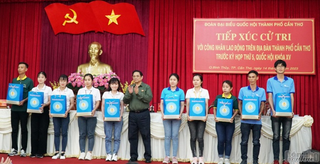 Phát biểu tiếp thu và giải đáp các kiến nghị của cử tri, Thủ tướng Phạm Minh Chính cho rằng các vấn đề cử tri đặt ra đều sát, đúng, trúng với thực tiễn hiện nay. Thủ tướng thông tin với cử tri về tình hình kinh tế - xã hội của đất nước trong thời gian qua và những giải pháp phát triển thời gian tới. Thủ tướng cho biết các tuyến đường bộ cao tốc từ TP Hồ Chí Minh đến TP Cần Thơ và trên địa bàn thành phố đang được đẩy nhanh tiến độ. Bộ Chính trị đã đồng ý xây dựng tuyến đường sắt TP Hồ Chí Minh - TP Cần Thơ, hiện nay Chính phủ đang đàm phán với các đối tác để xây dựng. Về đề xuất xây dựng nhà ở cho công nhân lao động thu nhập thấp, Thủ tướng cho biết, Chính phủ đã có nghị quyết và đề án, tập trung chỉ đạo các bộ, ngành Trung ương và địa phương đến năm 2030 xây dựng 1 triệu căn nhà ở xã hội nhằm đáp ứng nhu cầu của người dân, nhất là người lao động có thu nhập thấp. Thủ tướng khẳng định, việc xây dựng thiết chế văn hóa trong các khu công nghiệp được các ngành chức năng, hệ thống công đoàn và các doanh nghiệp quan tâm thực hiện, góp phần nâng cao đời sống văn hóa tinh thần của công nhân lao động… Các ý kiến khác, Thủ tướng yêu cầu nghị Văn phòng Đoàn đại biểu Quốc hội thành phố tổng hợp đầy đủ để gửi đến cấp thẩm quyền xem xét.