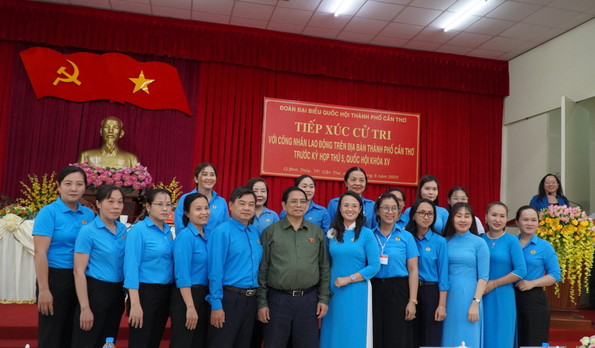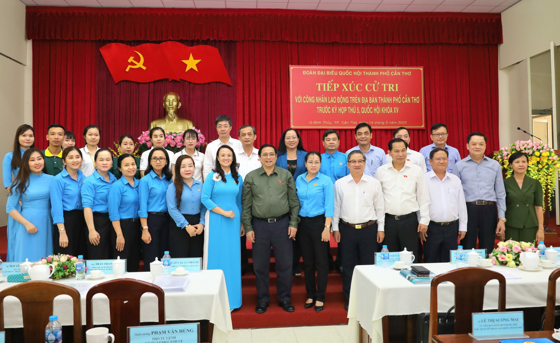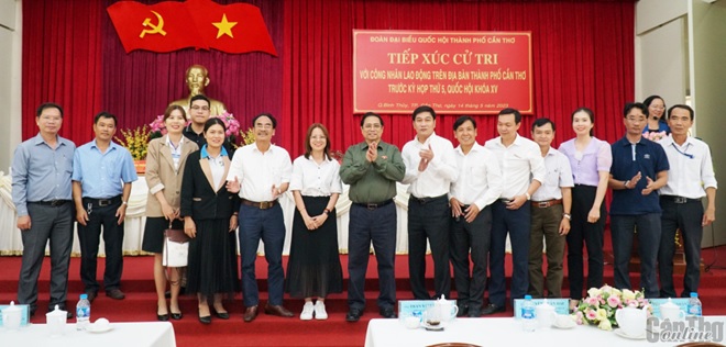 Sáng 14-5, Thủ tướng Phạm Minh Chính; ông Lê Quang Mạnh, Ủy viên Trung ương Đảng, Bí thư Thành ủy, Trưởng Đoàn đại biểu Quốc hội TP Cần Thơ và các đại biểu Quốc hội TP Cần Thơ tiếp xúc khoảng 200 cử tri đại diện các doanh nghiệp, công nhân, người lao động trên địa bàn thành phố trước Kỳ họp thứ năm Quốc hội khóa XV (kỳ họp).