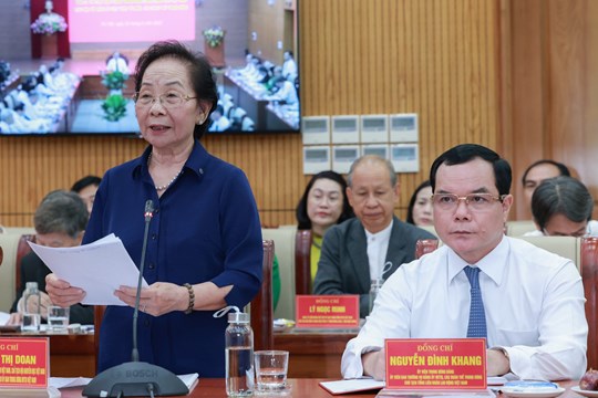 Đồng chí Nguyễn Thị Doan, nguyên Phó Chủ tịch nước CHXHCN Việt Nam, Phó Chủ tịch không chuyên trách Ủy ban Trung ương MTTQ Việt Nam phát biểu thảo luận tại cuộc làm việc
