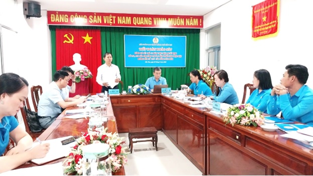 Thành phần LĐLĐ TPCT tiếp Đoàn khảo sát, có đồng chí Huỳnh Thị Hiền, Phó Chủ tịch Thường trực LĐLĐ TPCT, đ/c Nguyễn Thị Phương Kiều, UVBTV, Trưởng ban CSPL&QHLĐ LĐLĐ TPCT, cán bộ chuyên môn phòng Ban LĐLĐ TPCT, Chủ tịch một số CĐ cấp trên trực tiếp và CĐCS tham dự.