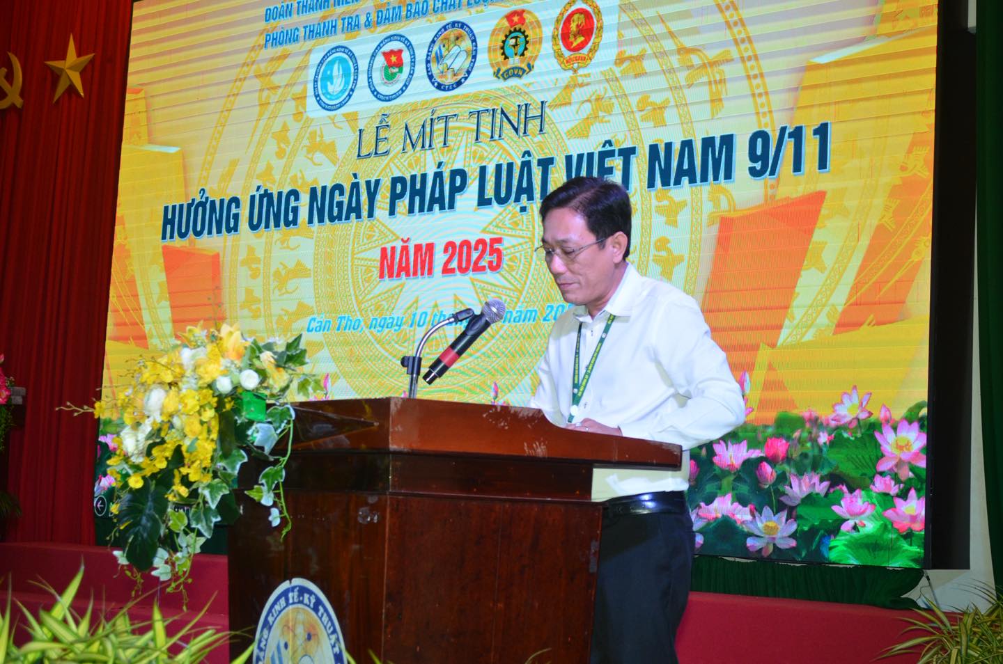 Hưởng ứng Ngày Pháp luật Việt Nam (9/11), Công đoàn Trường Cao đẳng Kinh tế - Kỹ thuật Cần Thơ (CTEC) phối hợp cùng các đơn vị trong nhà trường tổ chức Lễ mít tinh với sự tham dự của Đảng ủy, Ban Giám hiệu, lãnh đạo các phòng, khoa, cố vấn học tập, giảng viên chủ nhiệm và đông đảo học sinh, sinh viên tại Hội trường 500 chỗ.